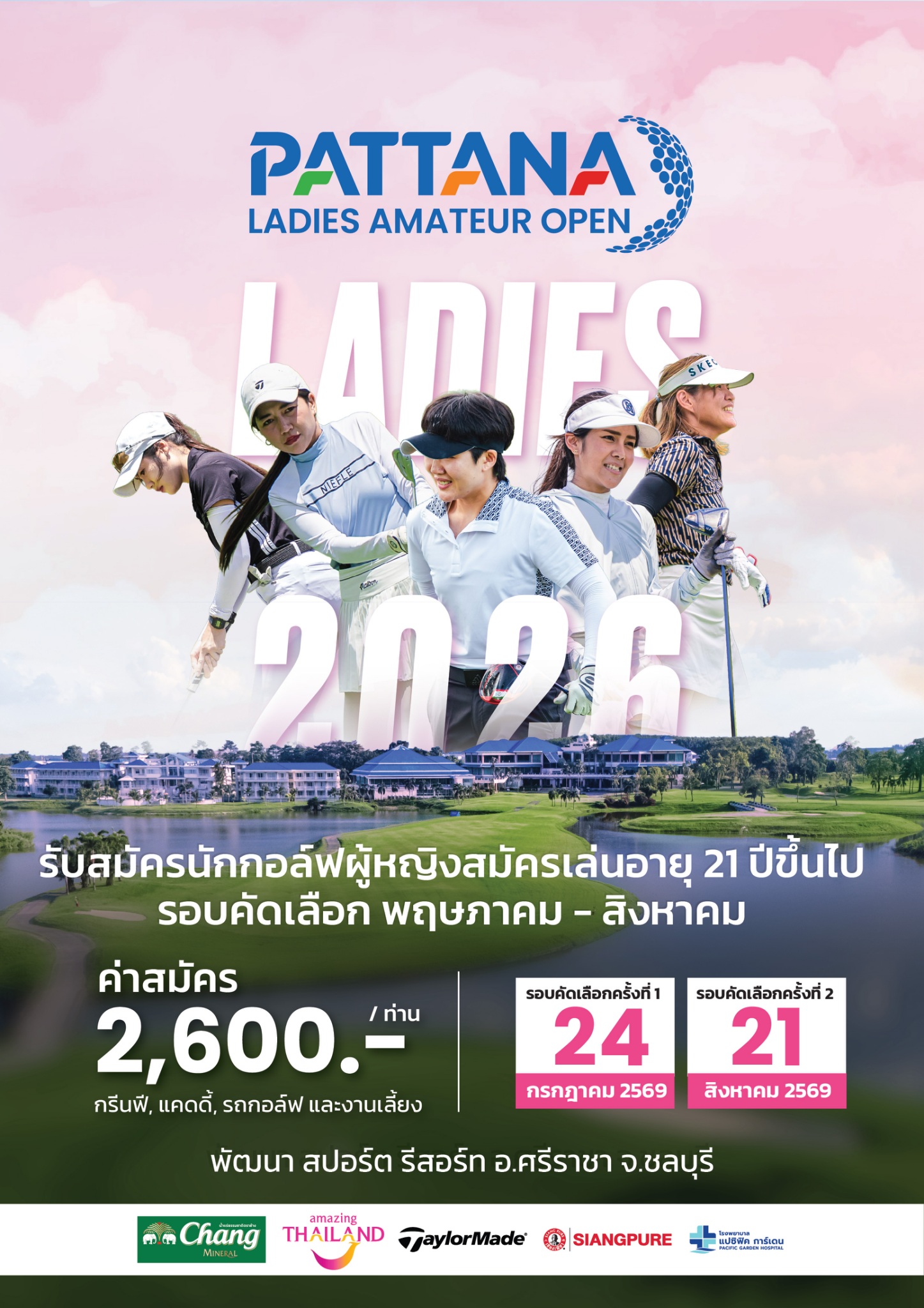 2. Pattana Ladies Amateur Open 2026: รายการใหม่ล่าสุดเพื่อสนับสนุนนักกอล์ฟสตรีสมัครเล่น (อายุ 21 ปีขึ้นไป) แข่งขันรอบคัดเลือก 2 รอบ เพื่อค้นหา 8 นักกอล์ฟหญิงฝีมือดีเข้าสู่รอบชิงชนะเลิศ “The Chairman Trophy 2026” ในเดือน ก.ย.69 นี้