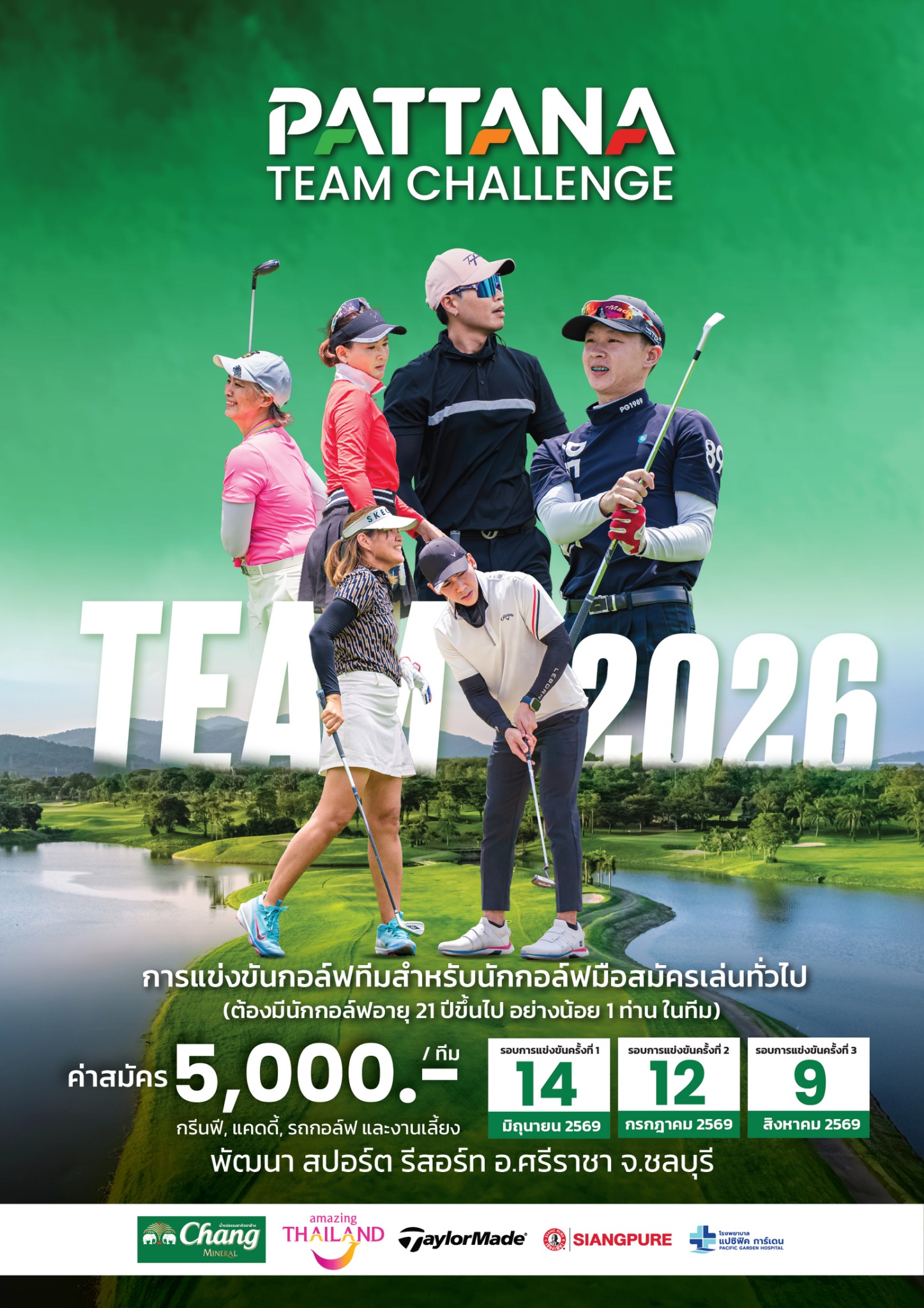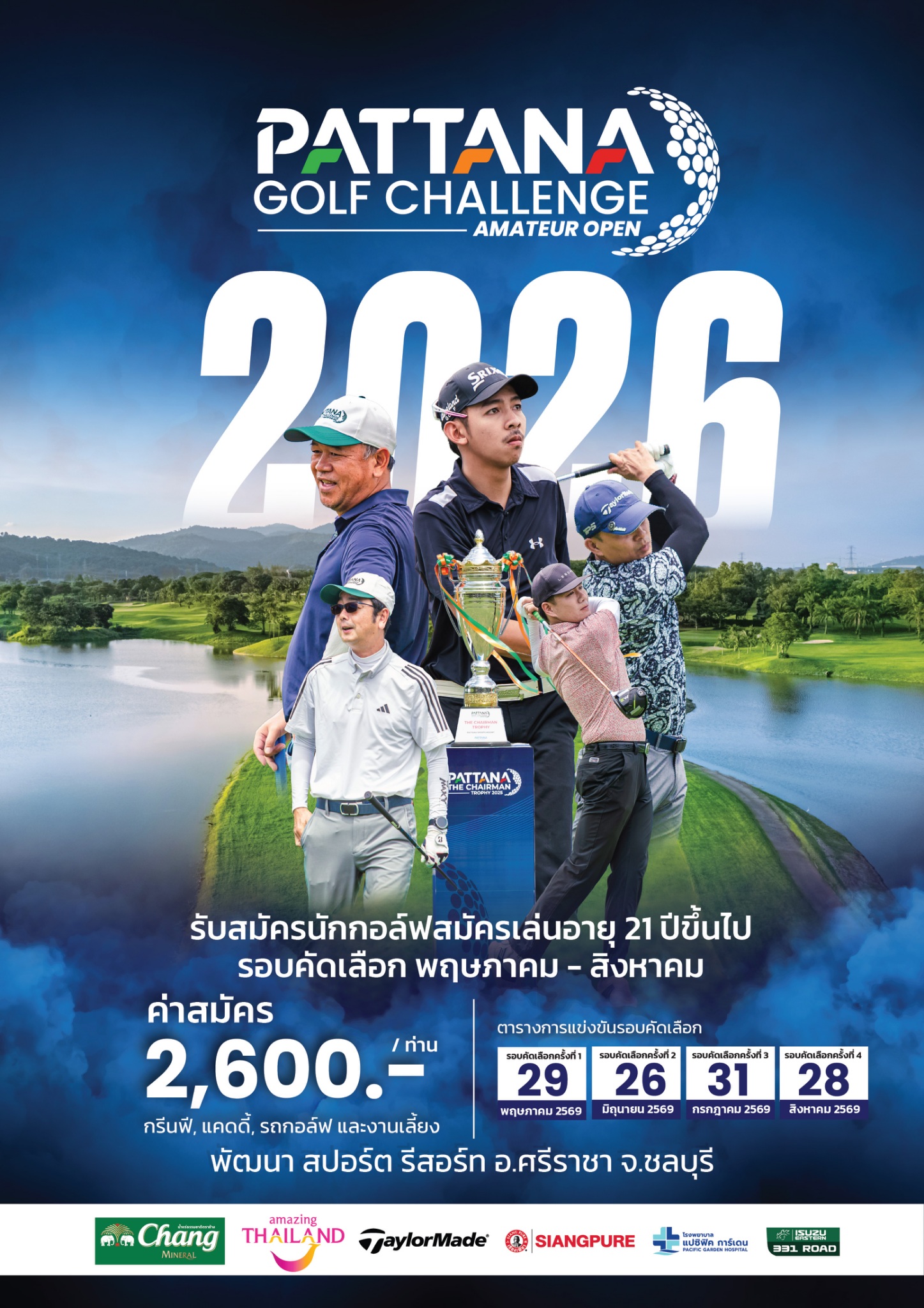 1. Pattana Golf Challenge Amateur Open 2026: การแข่งขันประเภทบุคคลสำหรับนักกอล์ฟสมัครเล่น (อายุ 21 ปีขึ้นไป) พิสูจน์ความแกร่งในรอบคัดเลือก 4 รอบ เพื่อเฟ้นหา 8 ยอดฝีมือเข้าสู่รอบชิงชนะเลิศ “The Chairman Trophy 2026” ในรูปแบบ Match Play เพื่อชิงรางวัลเกียรติยศและจารึกชื่อในถ้วยรางวัลแชมป์ประจำปี