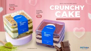 Crunchy Cake ความลงตัวที่ต้องลอง เนื้อเค้กเนียนนุ่มและครีมละมุนละลายในปาก ตัดด้วยหน้าเค้กกรุบกรอบ เพิ่มความอร่อยในทุกคำ