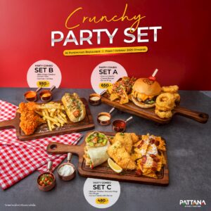 🎉 Crunchy Party Set อร่อยกรอบเต็มคำ จัดเซ็ตมาให้พร้อมแชร์! แมตช์เมนูและรสชาติให้เข้ากันในทุกเซ็ต ไม่ว่าจะเป็นของทอดชิ้นโปรด เบอร์เกอร์แน่น ๆ หรือเมนูทานเล่นสไตล์แม็กซิกัน ก็พร้อมให้อร่อยฟินได้ทุกเซ็ต! 😋✨